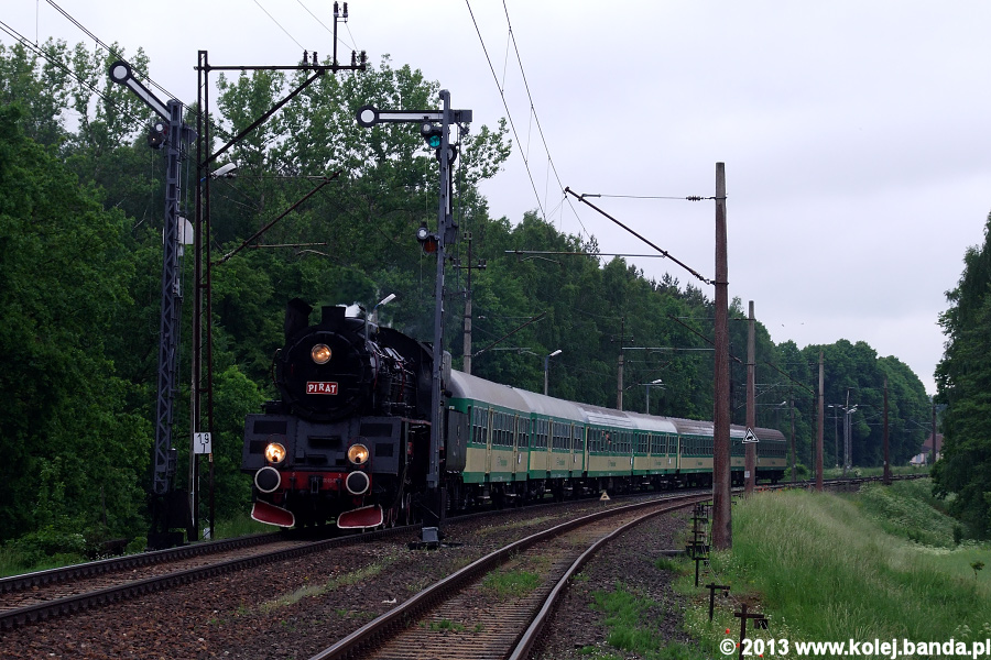 - Iwin, Ol49-69 z pociągiem specjalnym "Pirat" z Poznania do Kołobrzegu mija przelotem stację.