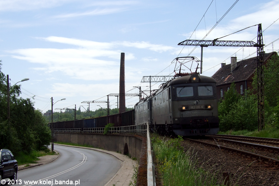 - Szczecin Glinki, 182 120-6 z pociągiem towarowym udają się w kierunku Polic.