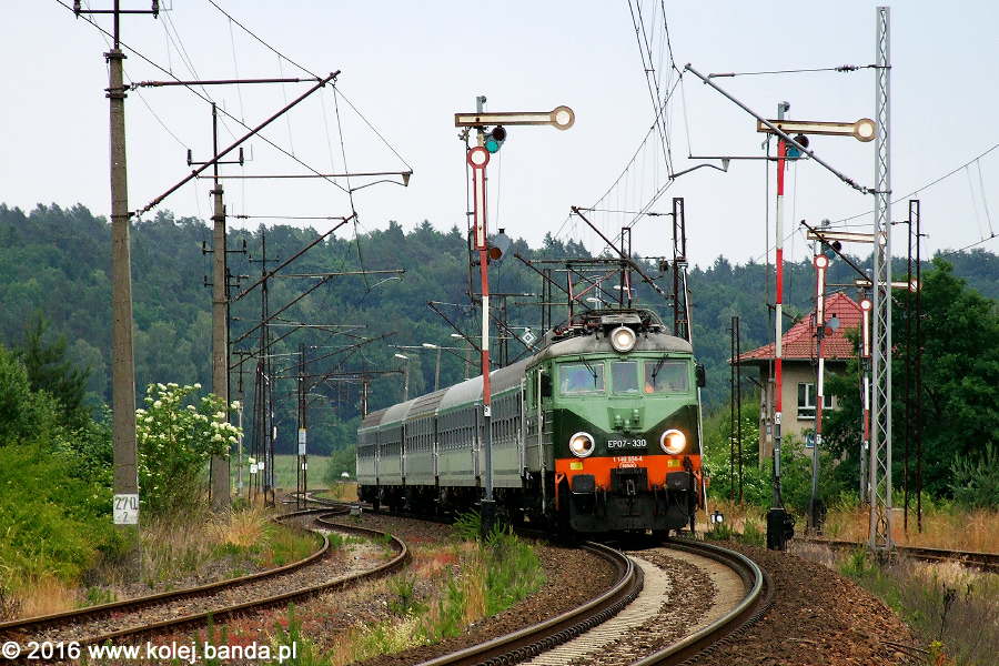 - Worowo, EP07-330 z pociągiem TLK Żuławy relacji Szczecin-Olsztyn wjeżdża bez zatrzymania na stację.