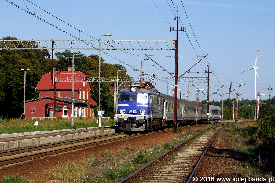 - Worowo, EP07-1059 z pociągiem TLK Polaris z Białegostoku do Szczecina pędzi do Łobza.