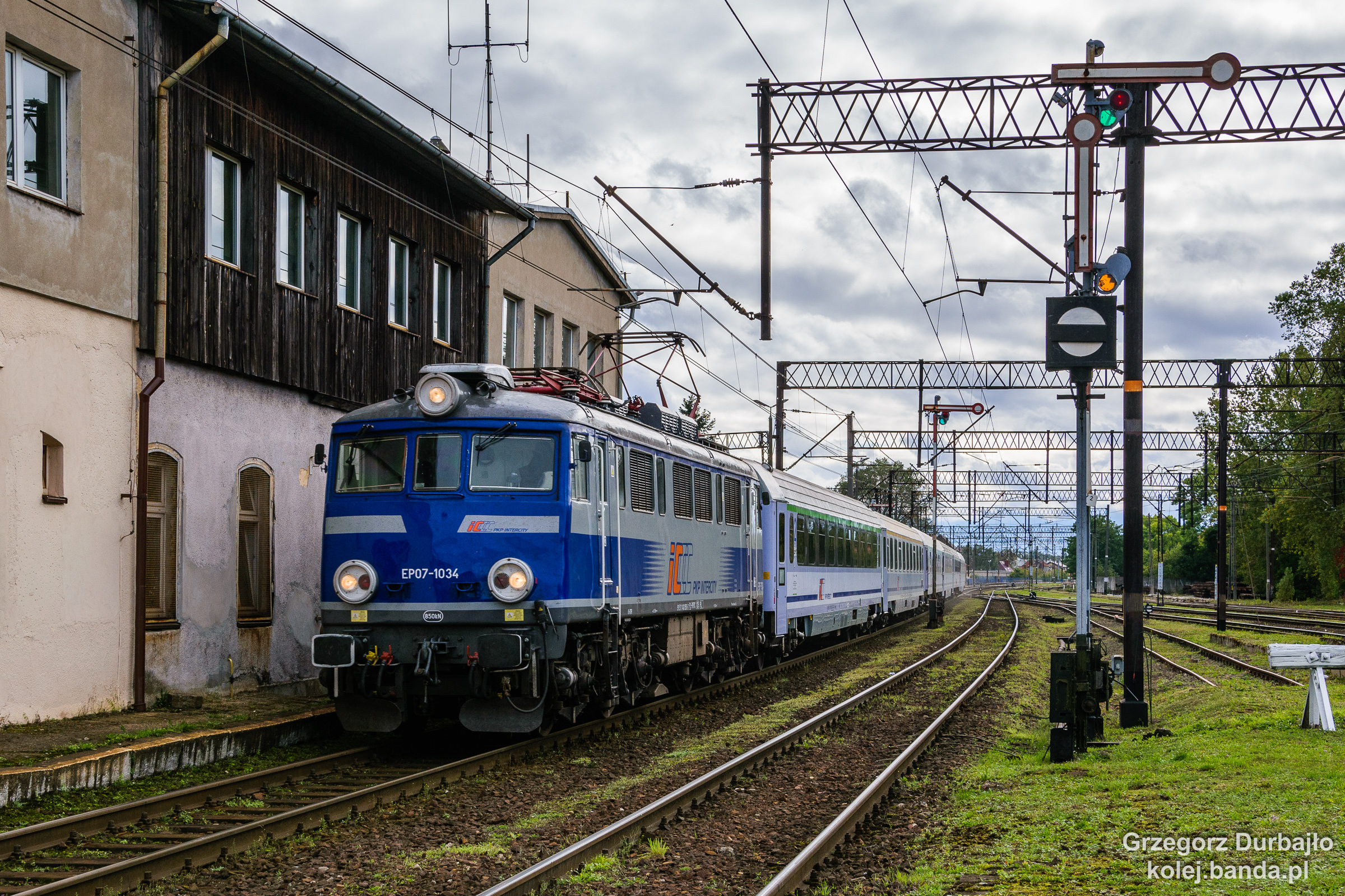 - Słupsk, EP07-1034 z pociągiem TLK Rybak relacji Szczecin Główny-Białystok zatrzymuje się na stacji.