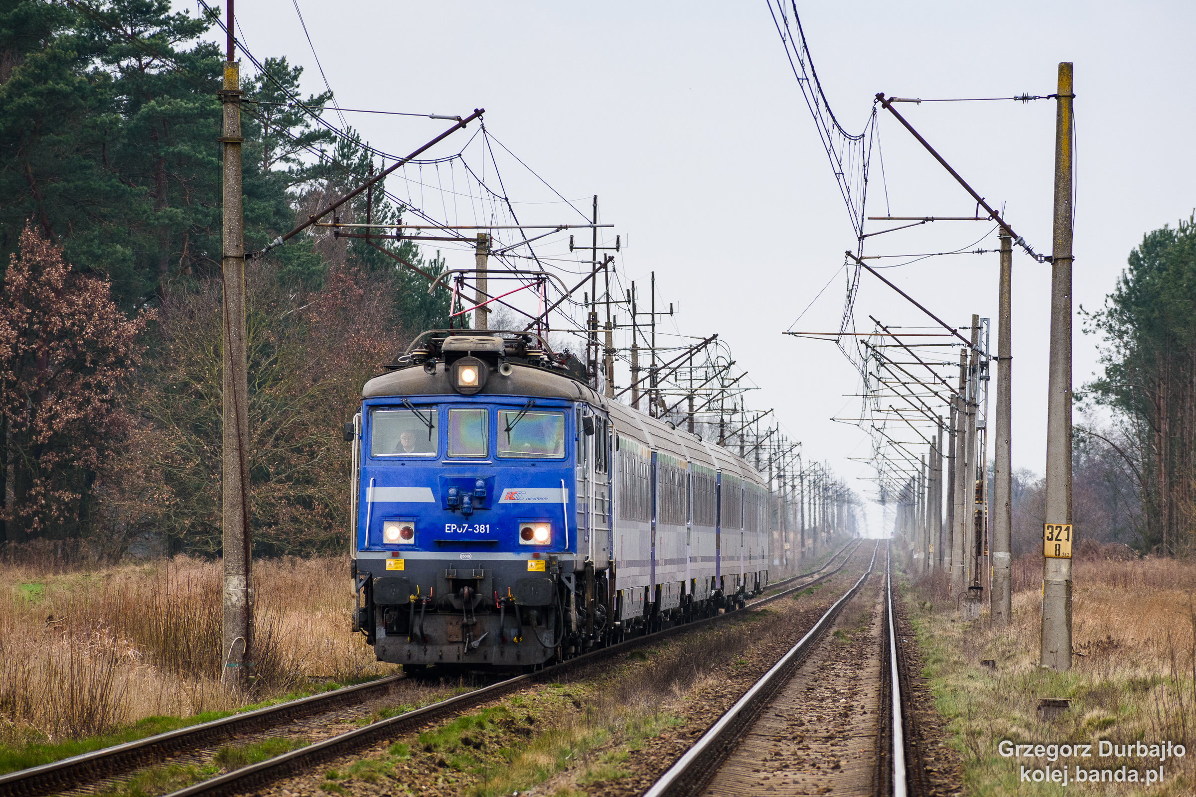- Gogolewo, EP07-381 z pociągiem IC Rybak ze Szczecina Głównego do Białegostoku udaje się do Chociwla.