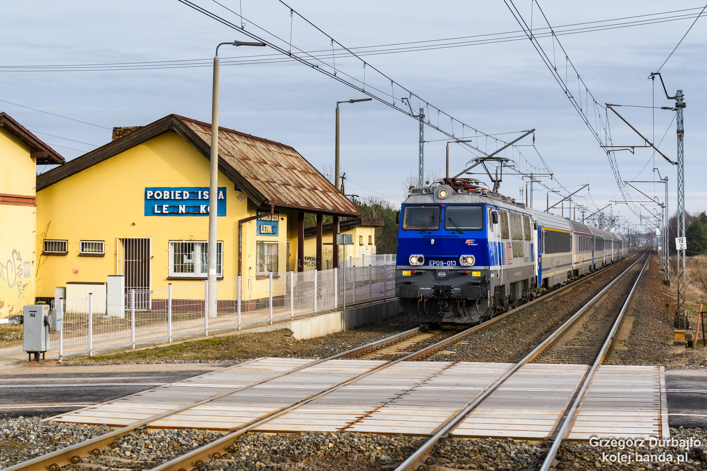 - Pobiedziska Letnisko, EP09-013 z pociągiem IC Artus z Gdyni Głównej do Przemyśla Głównego zmierza do Biskupic Wielkopolskich.