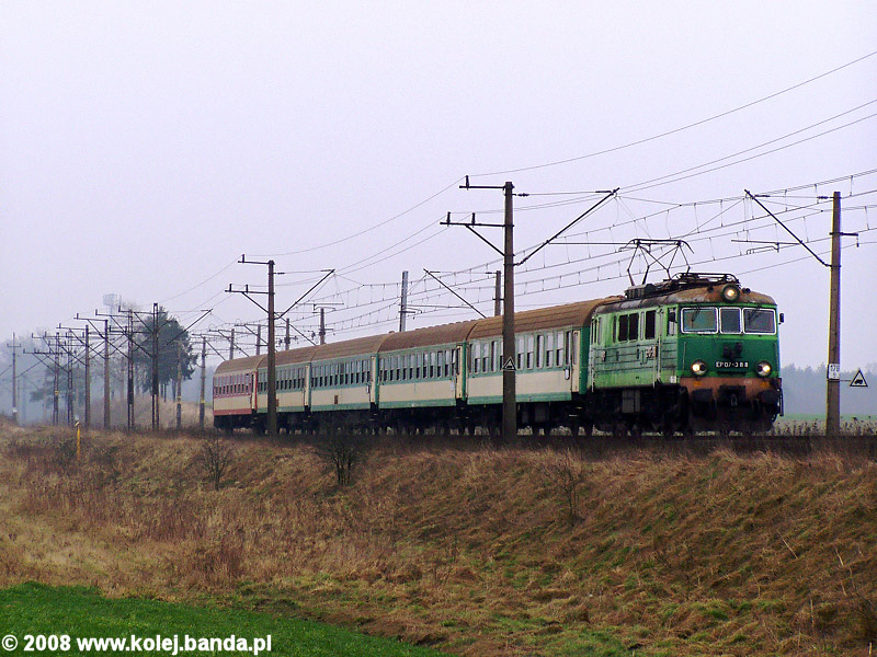 - Grzędzice Stargardzkie. EP07-388 z pociągiem pospiesznym "Włókniarz" z Łodzi Kaliskiej pędzi w kierunku Szczecina.