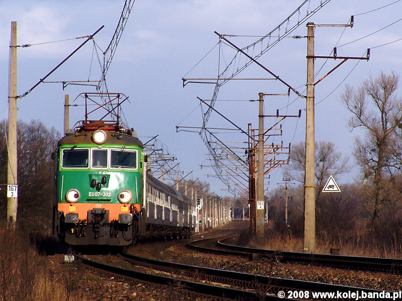 - Witkowo Pyrzyckie. EU07-302 z pociągiem TLK Gałczyński pędzi w kierunku Choszczna.