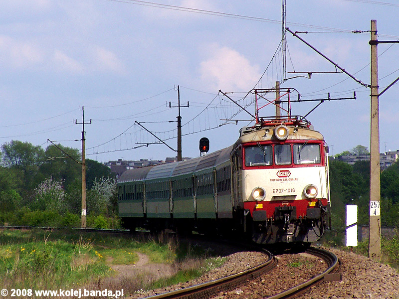 - Świdwin. EP07-1016 z Bryzą relacji Olsztyn-Szczecin pędzi w kierunku Szczecina.