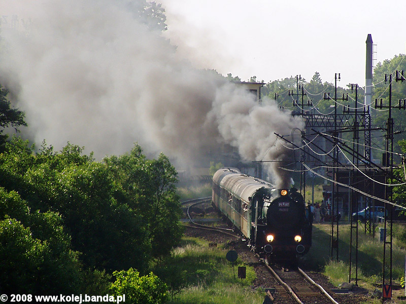 - Białogard. Pm36-2 z pociągiem specjalnym "Pirat" z Kołobrzegu do Poznania opuszcza miasto.