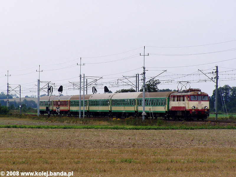 - Dobroszów. EP07-1033 z pociągiem pospiesznym "Oleńka" relacji Zgorzelec-Warszawa pomyka w kierunku Legnicy.