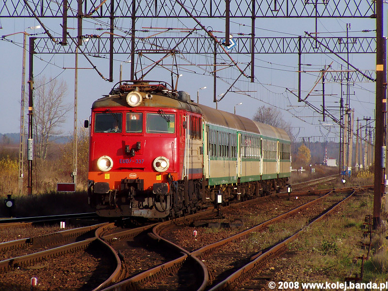 - Świdwin. EU07-337 z pociągiem osobowym "Albatros" relacji Gdynia-Szczecin za moment zatrzyma się na stacji.