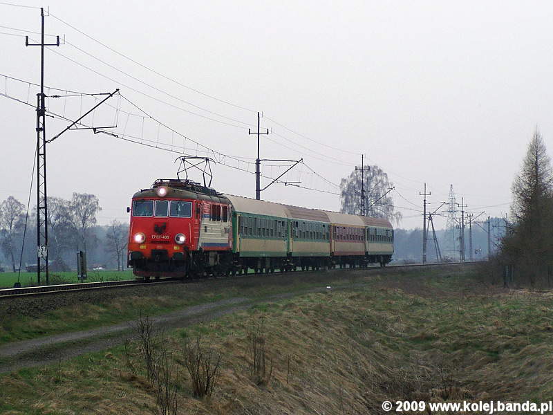 - Świdwin, EP07-400 z pociągiem pospiesznym "Albatros" ze Szczecina do Tczewa zbliża się do stacji.