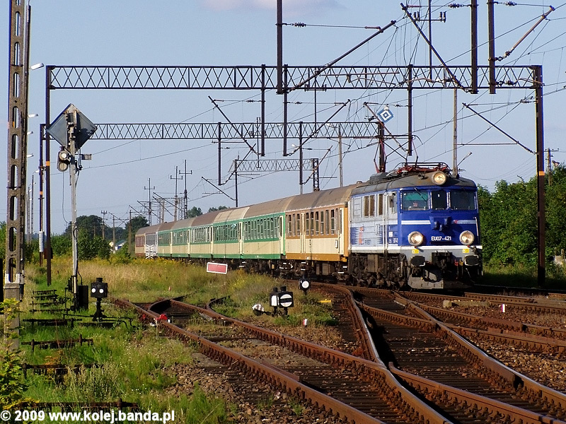 - Świdwin, EU07-421 z pociągiem "Rybak" z Białegostoku do Szczecina zbliża się do stacji.