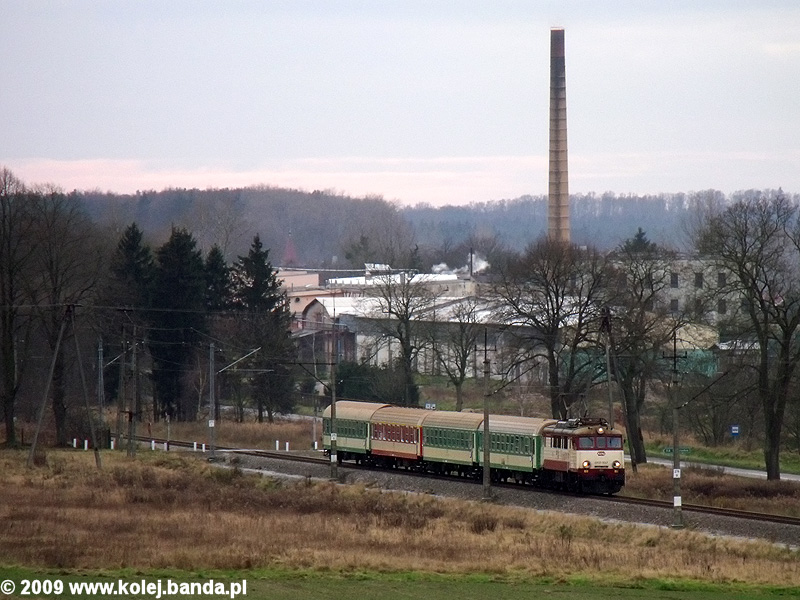 - Łobez. EP07-1047 z pociągiem "Bryza" relacji Szczecin-Olsztyn z prędkością 60km/h zbliża się do Worowa.