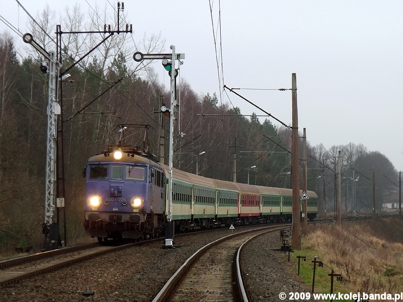 - Iwin, EU07-226 z pociągiem pospiesznym "Gwarek" relacji Katowice-Kołobrzeg mija przelotem stację.