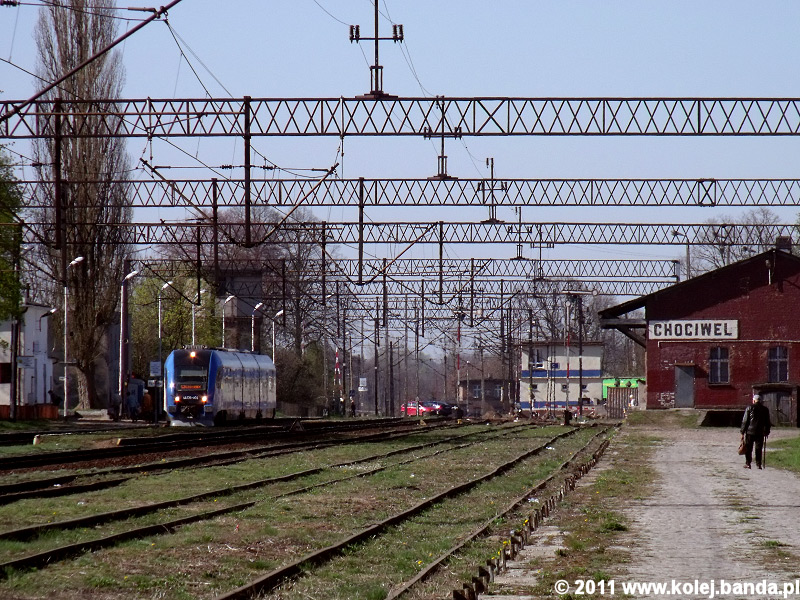 - Chociwel. SA136-005 jako pociąg regio ze Szczecina do Szczecinka stoi przy stacji.