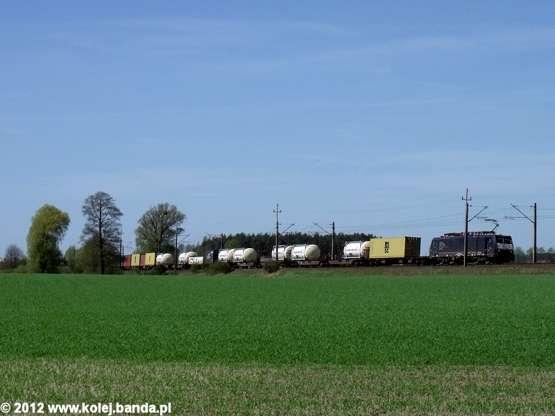 - Szlak Zbąszyń-Nowy Tomyśl, 186 z pociągiem towarowym zmierza w kierunku Poznania.