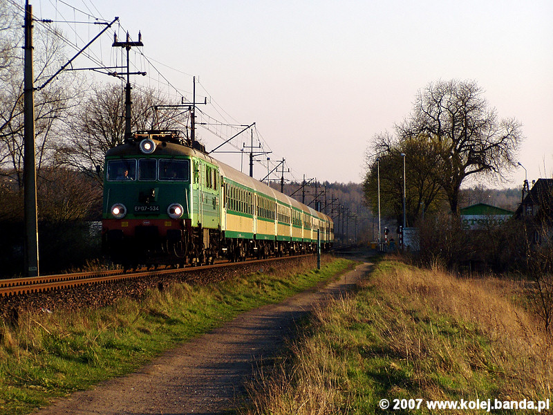 - Świdwin, EP07-534 z wieczornym Albatrosem pędzi w kierunku stacji.