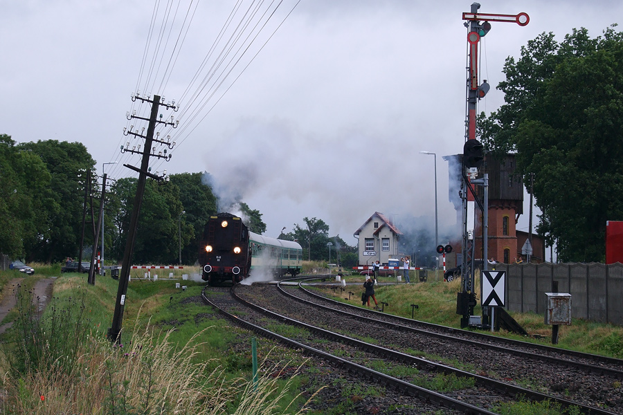 - Czaplinek, Ol49-69 z pociągiem specjalnym "Anakonda" relacji Poznań-Jankowo Pomorskie opuszcza stację.