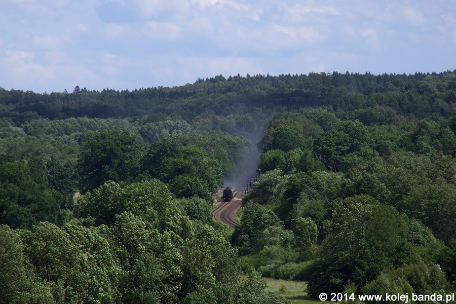 - Węgorzyno, Ol49-69 z pociągiem specjalnym "Krówka" relacji Drawsko Pomorskie-Świdwin zbliża się do Runowa Pomorskiego.