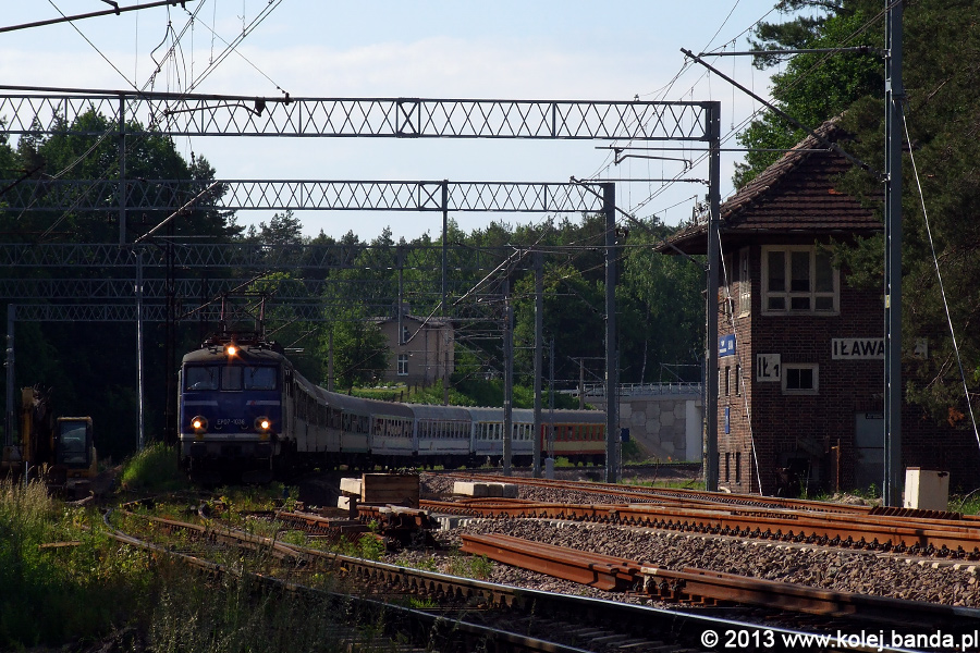 - Iława, EP07-1036 z pociągiem TLK "Pobrzeże" z Kołobrzegu do Krakowa Głównego opuszcza miasto, kierując się do Działdowa.