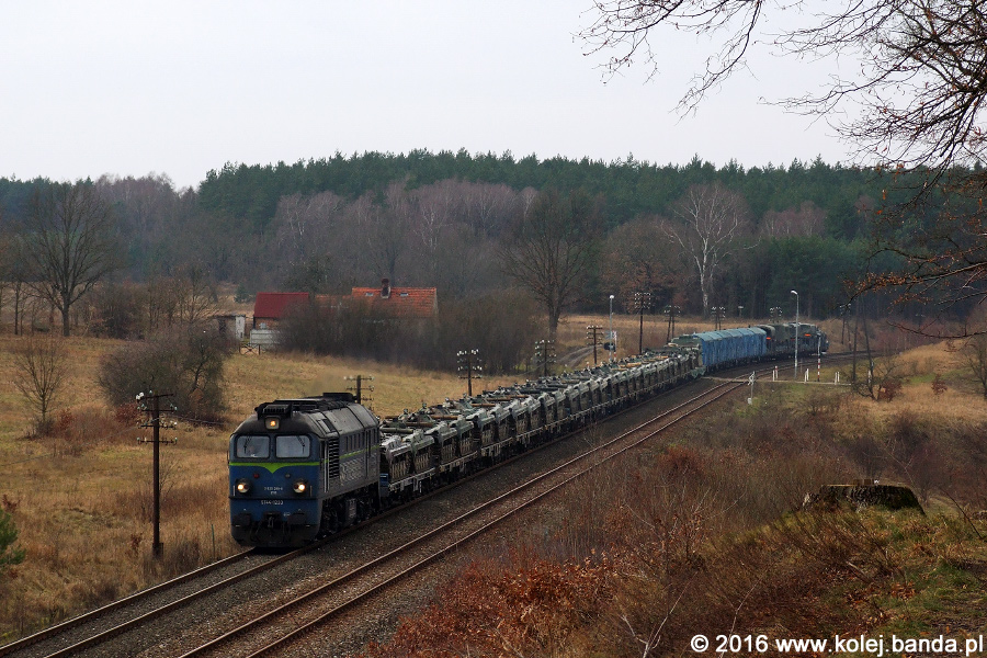 - Jankowo Pomorskie, ST44-1233 z eszelonem ze Stargardu Szczecińskiego zbliża się do stacji, gdzie następnie rozpoczną się manewry do bocznicy.