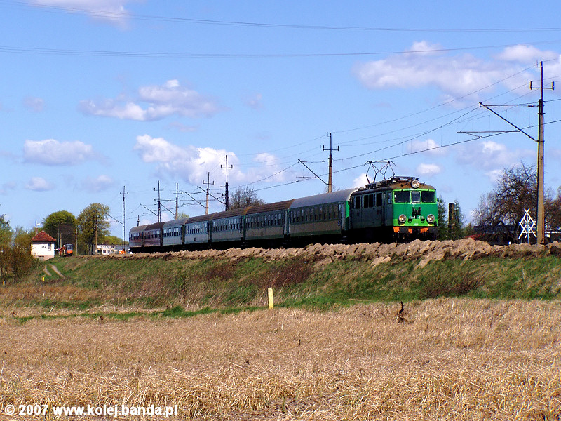 - Świdwin. EU07-215 z pociągiem "Bryza" za chwilę zatrzyma się na stacji.