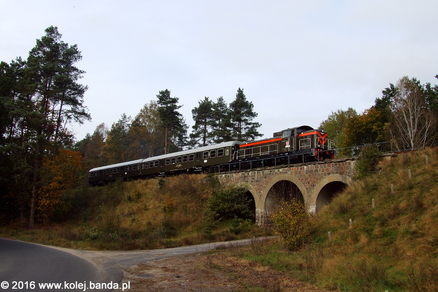- Rutwica, SM42-523 z pociągiem specjalnym relacji Krzyż-Stargard-Piła-Krzyż mija wiadukt.
