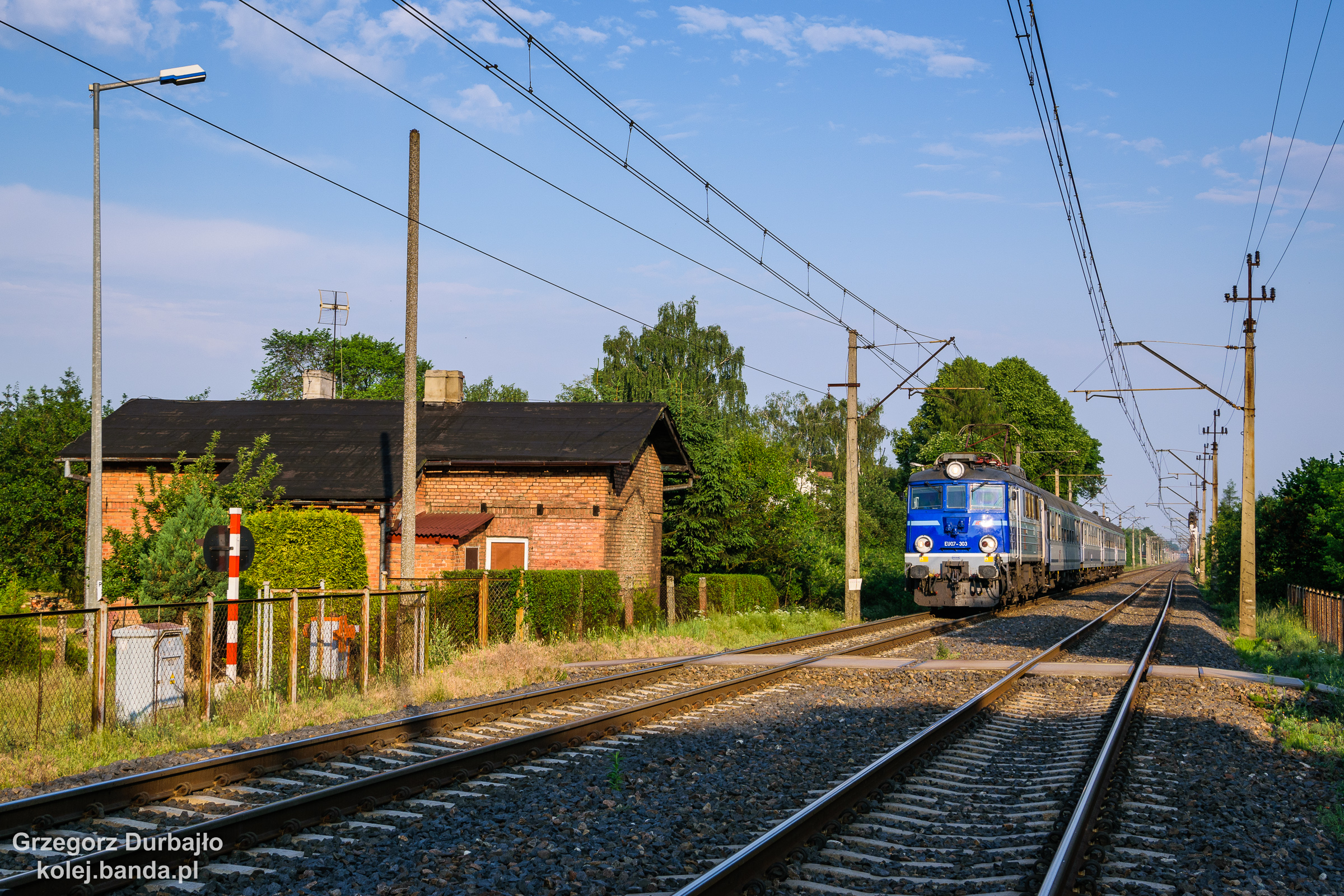 - Szczecin Zdunowo, EU07-303 z pociągiem TLK Magnolia do Krakowa zbliża się do przystanku osobowego.