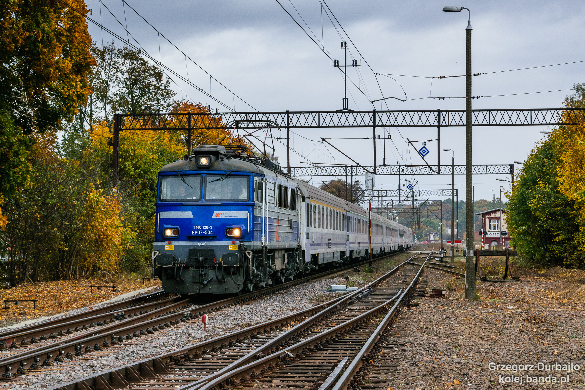 - Łobez, EP07-534 z pociągiem IC Malczewski z Kołobrzegu i Słupska do Przemyśla opuszcza stację.