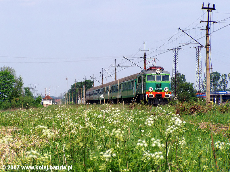 - Świdwin. EU07-501 z "Bryzą" jedzie w kierunku stacji.