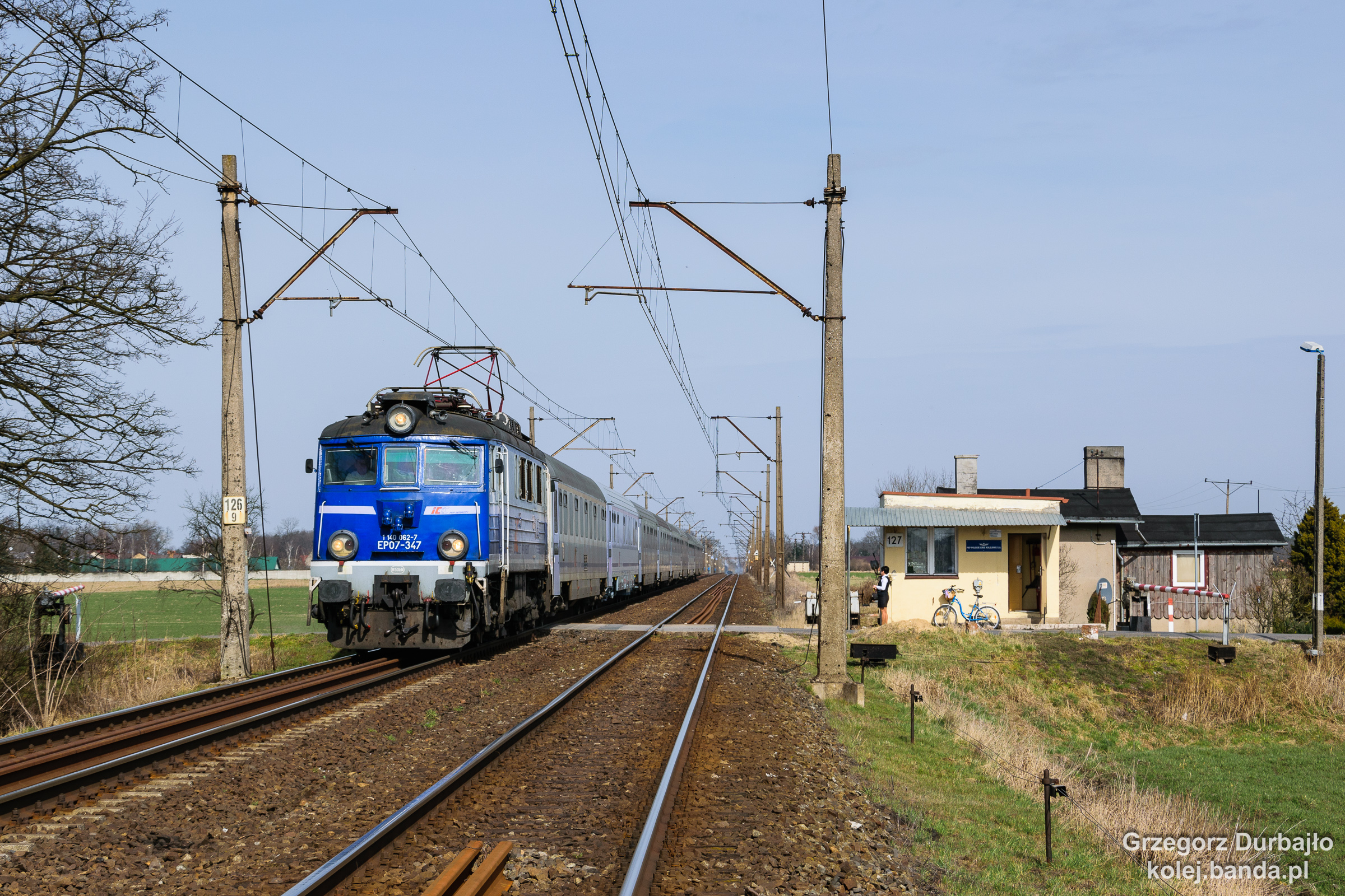 - Oborzyska Stare, EP07-347 z pociągiem IC Malczewski z Kołobrzegu i Słupska do Przemyśla Głównego udaje się do Kościana