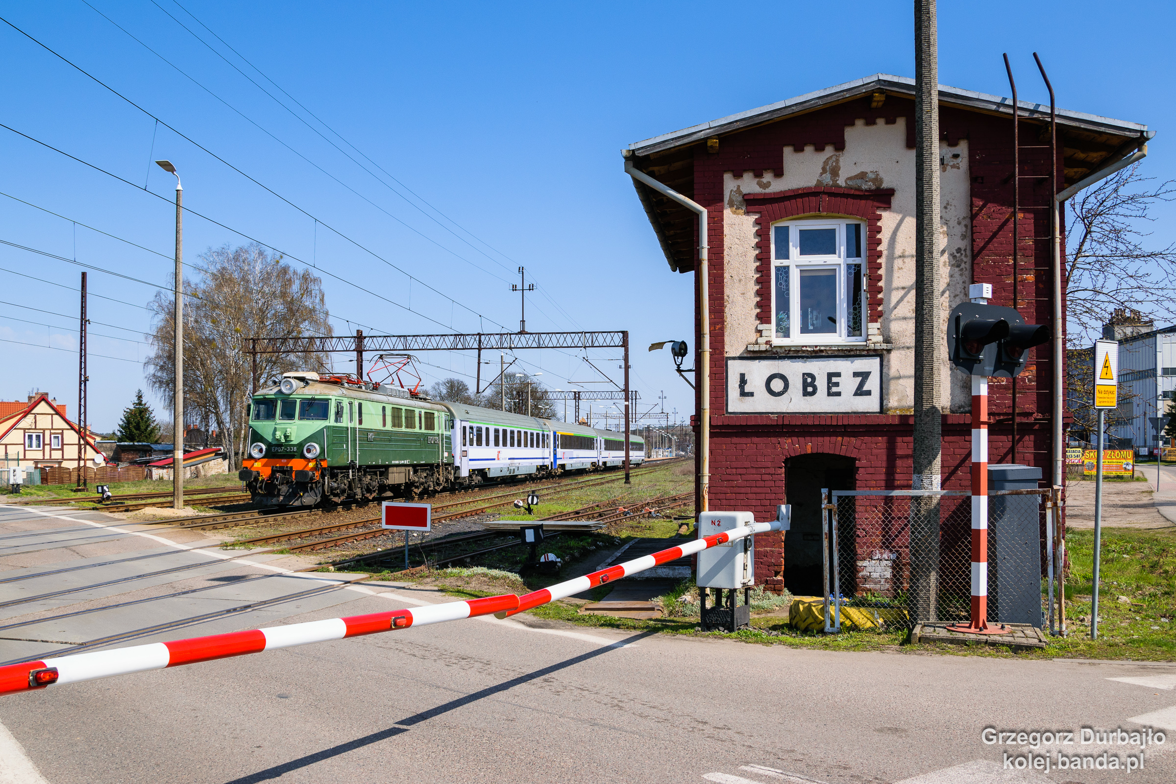 - Łobez, EP07-338 z pociągiem IC Żuławy relacji Olsztyn Główny-Szczecin Główny wyrusza ze stacji.