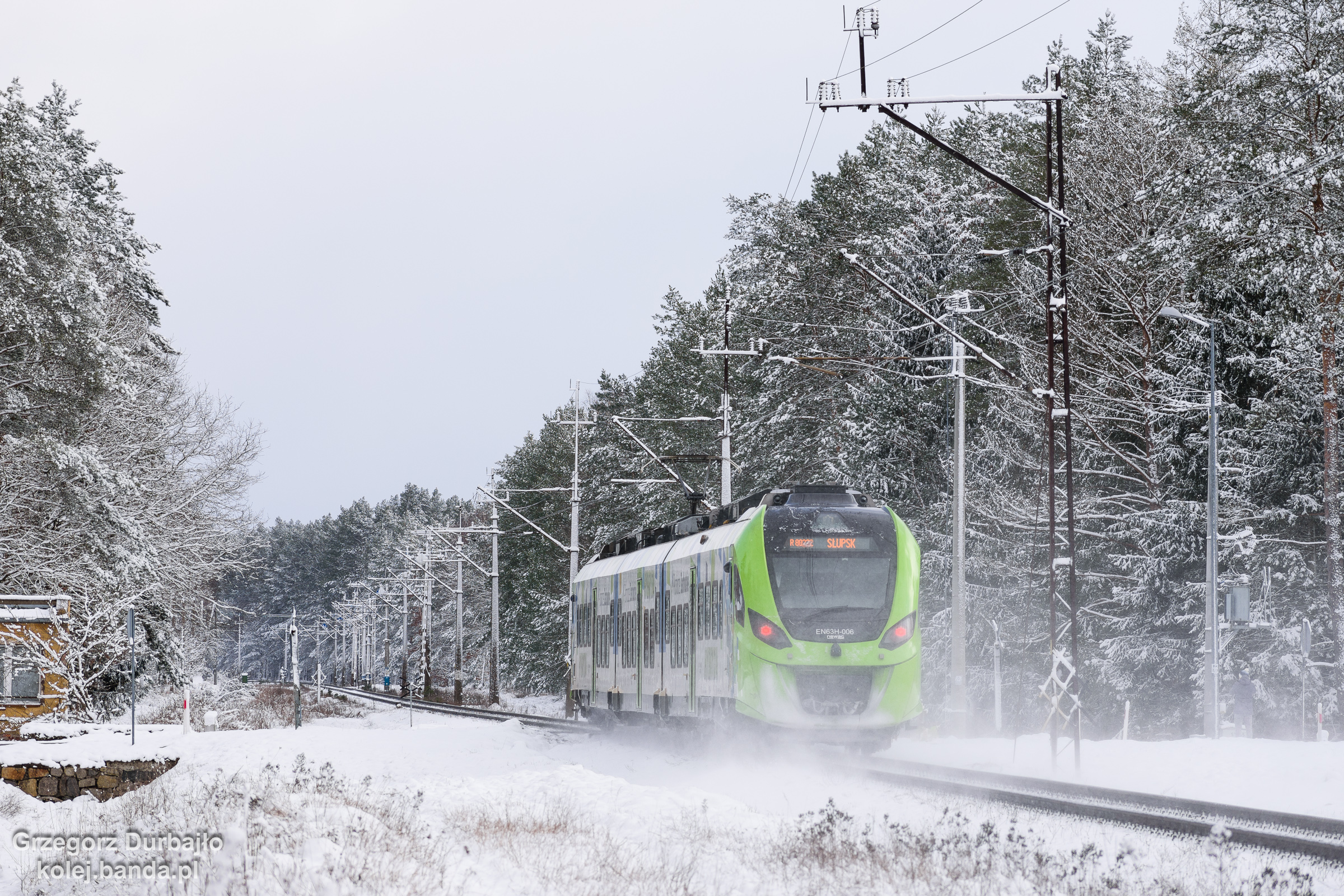- Nielep, EN63H-006 jako pociąg regio Sztorm relacji Szczecin Główny-Słupsk zmierza do Rąbina.