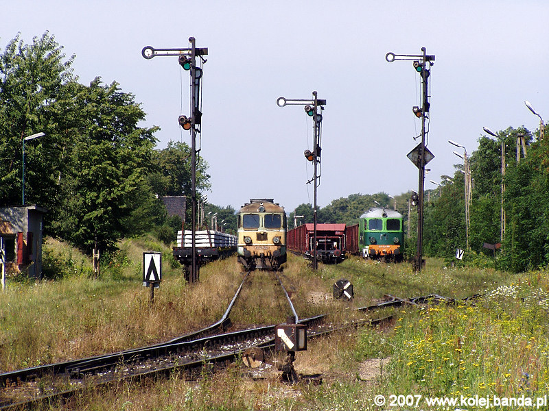 - Rogoźnica. ST43-221 oblatuje skład z podkładami. Obok ST43-381 czeka na odjazd.