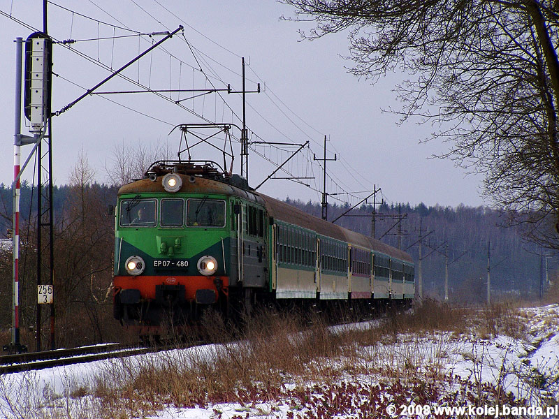 - Świdwin. EP07-480 z Gryfem jedzie w kierunku stacji.