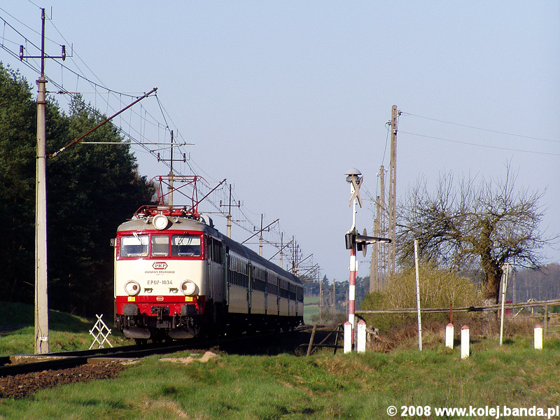 - Bystrzynka. EP07-1034 z Gryfem pędzi w kierunku Koszalina.