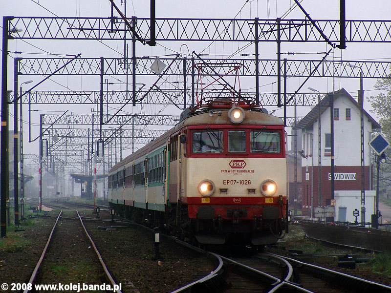 - Świdwin, EP07-1026 z Gryfem ze Szczecina do Olsztyna pędzi w kierunku Koszalina.