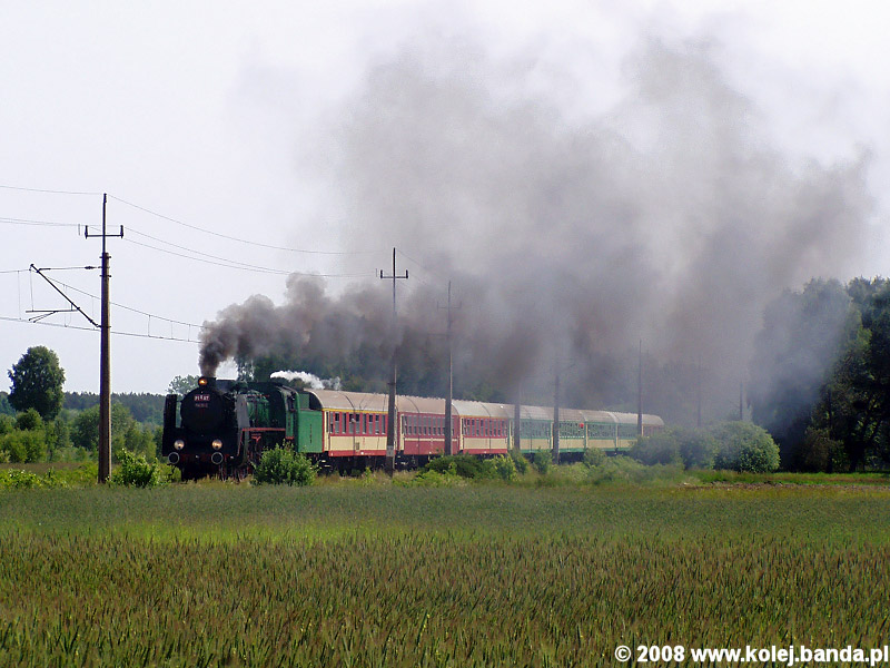 - Karlino. Pm36-2 z pociągiem specjalnym "Pirat" z Poznania do Kołobrzegu pędzi w kierunku stacji.