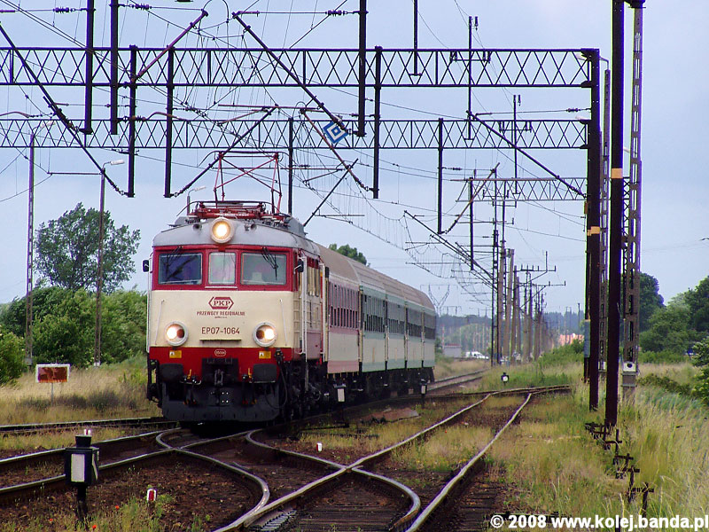 - Świdwin. EP07-1064 z pociągiem pospiesznym "Bryza" z Olsztyna do Szczecina za moment zatrzyma się na stacji.
