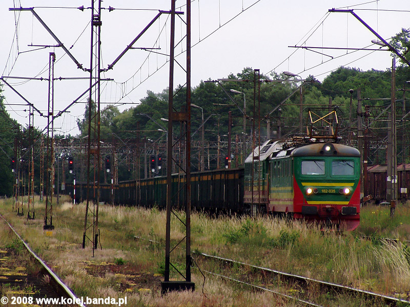 - Szczecin Dąbie SDA. 182-035 z bardzo długim składem za moment zatrzyma się na stacji. Za czechem BR232-008 a na popychu niewidoczna na zdjęciu 3E-002.