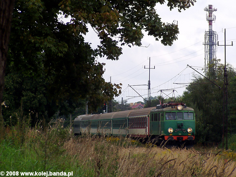 - Świdwin. EU07-141 z pociągiem "Bryza" z Olsztyna do Szczecina opuszcza miasto.