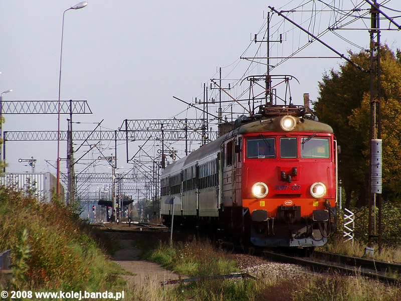 - Świdwin. EU07-337 z pociągiem osobowym "Albatros" z Gdyni do Szczecina opuszcza miasto.