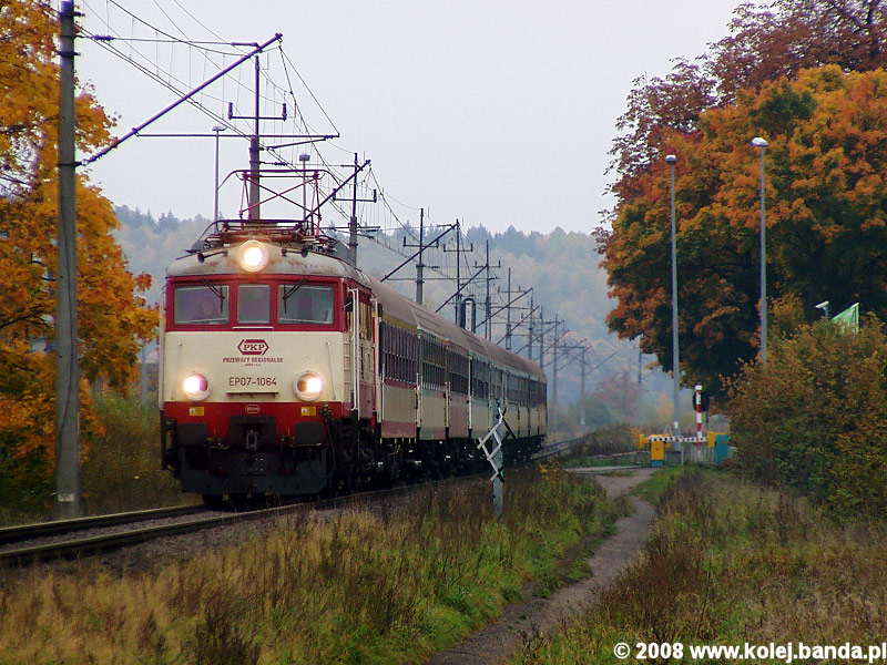 - Świdwin. EP07-1064 z pociągiem pospiesznym "Rybak" ze Szczecina do Białegostoku za moment zatrzyma się na stacji.