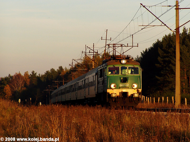- Bystrzynka. EU07-497 z pociągiem pospiesznym "Rybak" z Białegostoku do Szczecina pędzi w kierunku Świdwina.