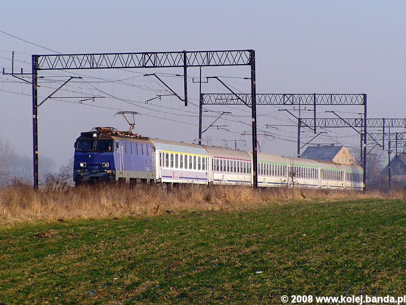 - Szczedrzykowice. EP09-008 z pociągem Ex "Pogórze" relacji Warszawa Wsch. - Jelenia Góra zmierza w stronę Legnicy.