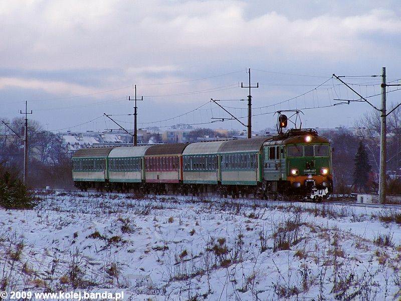 - Świdwin. EU07-497 z pociągiem pospiesznym "Albatros" z Tczewa do Szczecina pędzi w kierunku Worowa.