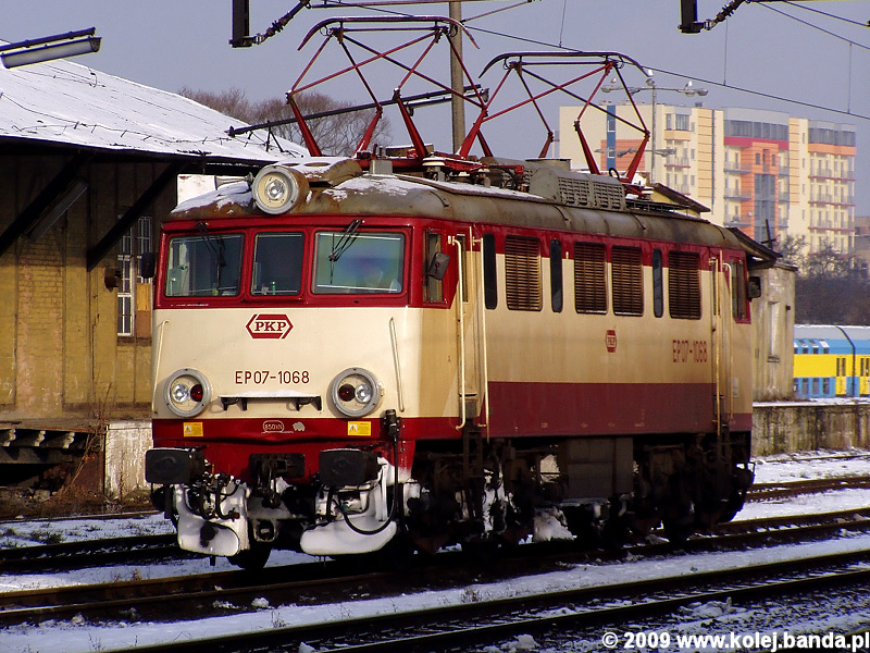 - Słupsk. EP07-1068 za moment pojedzie na wagonówkę po pociąg 84101 "Gwarek" relacji Słupsk-Katowice.