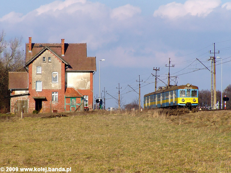 - Gola. EN57-1427 jako pociąg osobowy ze Szczecina do Koszalina zbliża się do Świdwina.