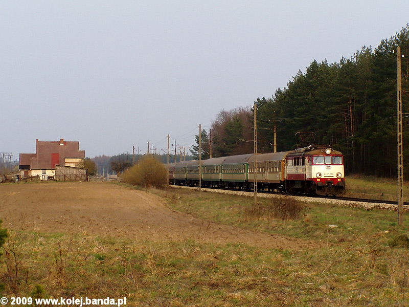 - Bystrzynka. EP07-1055 z pociągiem Rybak do Szczecina zbliża się do Świdwina.