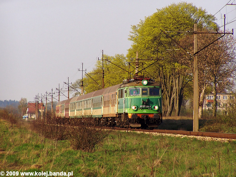 - Świdwin. EP07-201 z pociągiem pospiesznym "Rybak" do Szczecina za moment zatrzyma się na stacji.