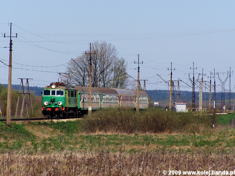 - Świdwin, EU07-188 z pociągiem pospiesznym "Bryza" do Szczecina zbliża się do stacji.